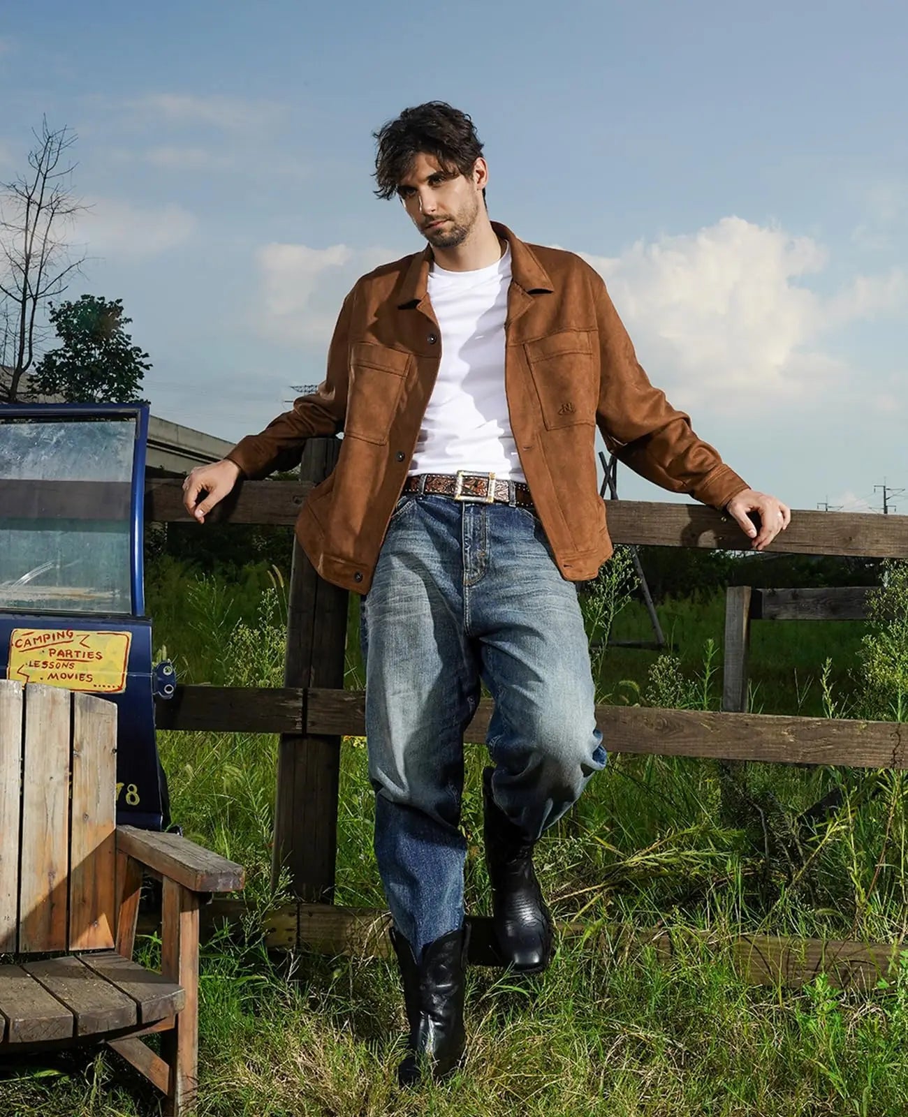 Men's Authentic Western Boots: Black Square Toe with Old West Embroidery