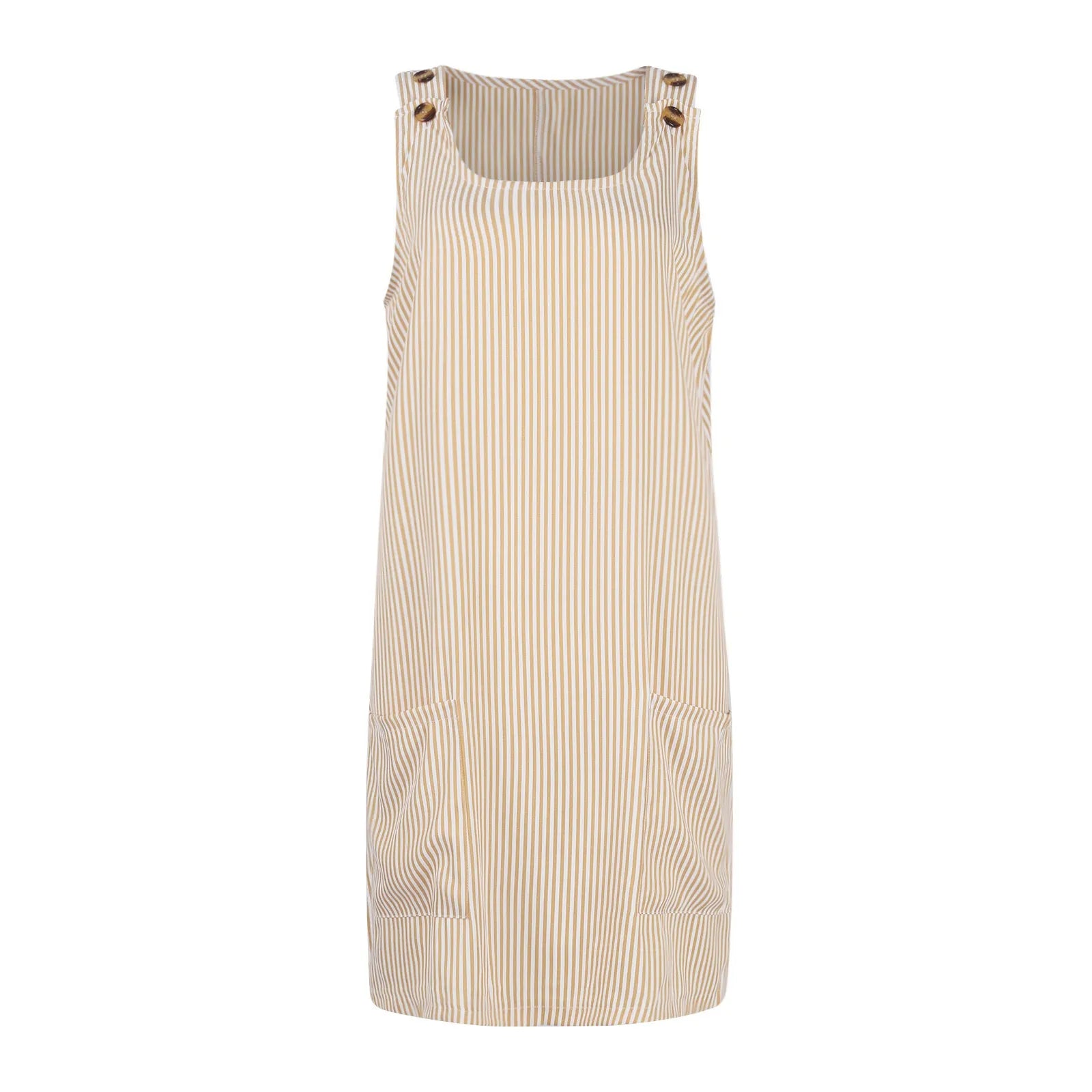 Summer Fashion Stripped Patchwork Commuting U-Neck Sleeveless Pockets